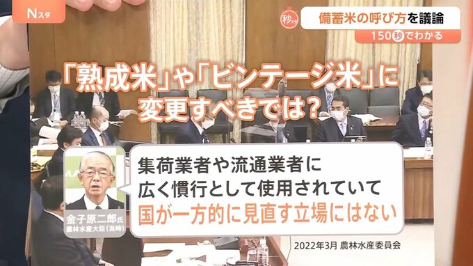 2022年3月の農林水産委員会でも、「『熟成米』や『ビンテージ米』に変更すべきではないか?」とコメの呼び方をめぐる議論がありました。