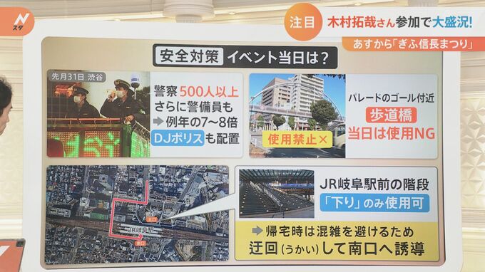 周辺の警備についても、市を挙げて県を挙げて、全国各地からの応援も含めてということになります。安全対策としてイベント当日は警察が500人以上、さらに警備員も例年の7~8倍配置するのではないか、DJポリスも配備されるのではないかということです。