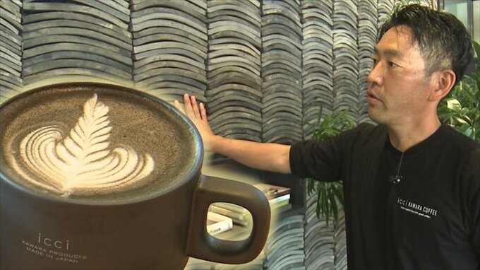大学の中にオープンした「瓦」カフェを紹介します。瓦を見て、触れて、味わえる日本文化の継承と発信の場になろうとしています。カフェでゆったりとコーヒーやスイーツを楽しむ人たち。利用者は:日本の雰囲気が出…