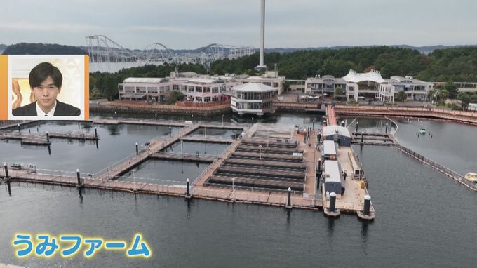 5万匹のイワシが泳ぐ大水槽など約700種類、12万点の生き物がいる日本最大級の水族館です。なかでも人気のエリアが…海上に浮かぶ施設「うみファーム」。