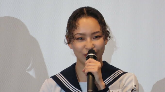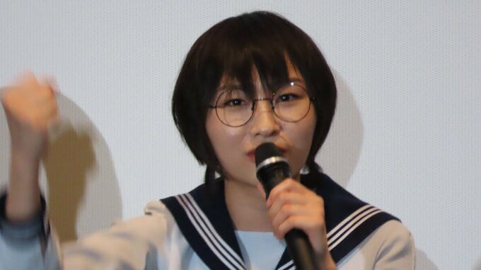 上映を前にSUZUKAさんは ‟初めての体験で感慨深いし、どういう感情で登壇すればいいのか分からなかったけど、「新しい学校のリーダーズ」が実現している姿をスクリーンでアウトプットできるのが嬉しいので、光栄の極みです” とSUZUKAさんらしく挨拶。続けて、‟歌いたいですね。ファンのみんながいるから。でも、今日はおとなしく我慢します” と笑わせました。