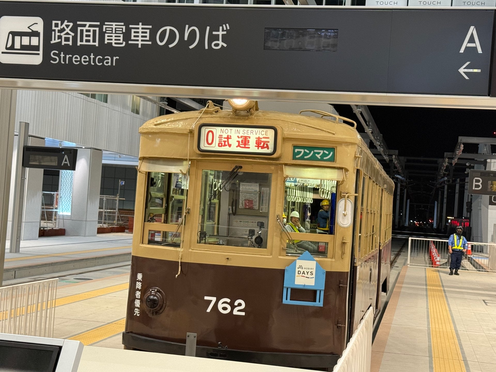 新しい広島駅ビルに乗り入れる広島電鉄の新ルート「駅前大橋線」の試運転が6日夜から翌7日未明にかけて実施されました。広島駅2階に乗り入れる高架部分の試運転も実施され、初めて広島駅に路面電車が乗り入れました。立ち会った広島電鉄の担当者は「ほっとしたというか、安心しました」と話しました。