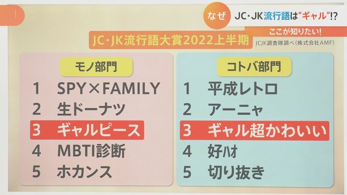 椎木さんが社長を務める会社がまとめました。「JC・JK流行語大賞2022上半期」ということで、「モノ部門」と「コトバ部門」に分けています。女子中学生や女子高校生の間で流行った言葉。