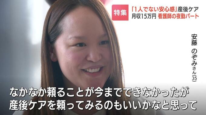 「なかなか頼るということが、今までできなかったんですけれど、“産後ケア”を頼ってみるのもいいかな…と思って。やっぱり安心感がありますね。子供がみていてもらえるというだけで、1人じゃないんだという…すごく来てよかったです」