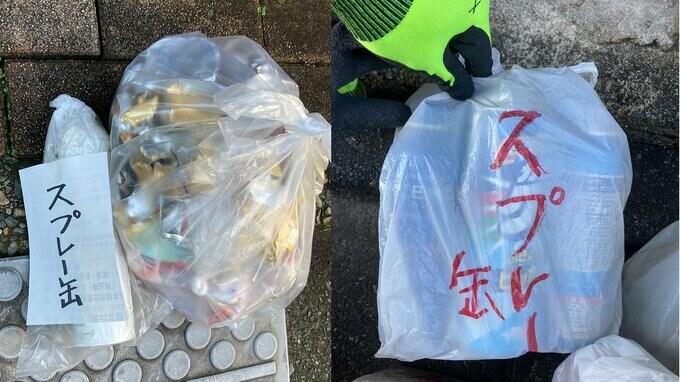 「割れ物で手も切ったことがあるので、わかりやすく別にしておいてくれると嬉しいです!スプレー缶も清掃車火災の原因になりますので、別に分けてください。」と呼びかけました。