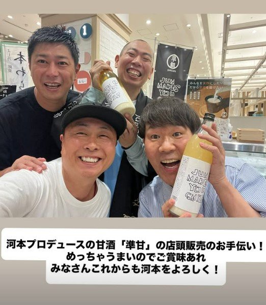 更に、藤本敏史さんはインスタグラムのストーリー機能を更新し「河本プロデュースの甘酒『準甘』の店頭販売のお手伝い!めっちゃうまいのでご賞味あれ みなさんこれからも河本をよろしく!」と、ファンに向けて呼びかけています。