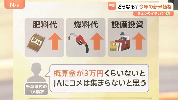 千葉県内のコメ農家は「概算金が3万円くらいないとJAにコメは集まらないと思う」と話していました。