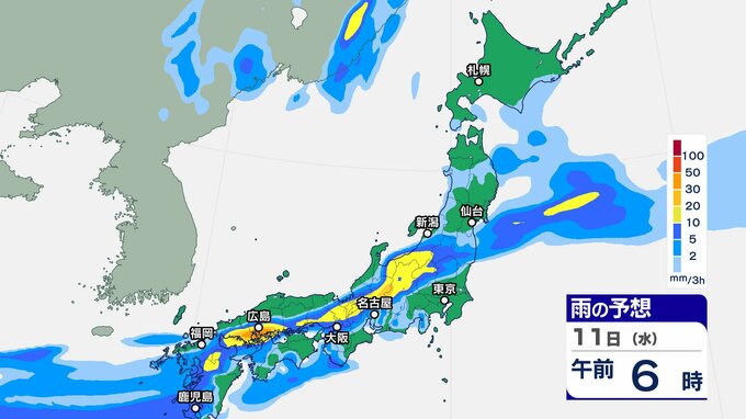 【大雨情報】近畿地方は11日夕方にかけて『警報級の大雨』となる可能性 局地的に雷を伴って“バケツひっくり返したような”激しい雨が降る所も【雨の動きシミュレーション】 チューリップテレビ 2025年6月10日(火) 07:15 国内 天気 11日(水)雨の動きシミュレーション