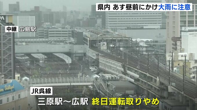 一方、交通の便にも影響がでています。JRによりますと、このあと、大雨が見込まれるため、JR呉線の三原駅と広駅の間で、終日運転を取りやめるということです。