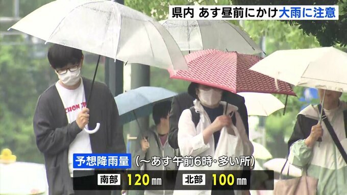11日午前6時までの24時間雨量は、南部で120ミリ、北部で100ミリと予想されています。この雨は、11日昼前まで降り続く見通しです。土砂災害や低い土地の浸水、河川の増水に十分注意してください。