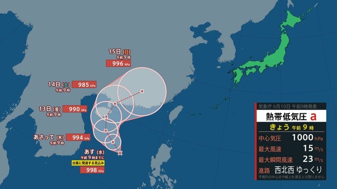 【台風情報】「台風1号」11日午前中までに発生か “台風の卵”の熱帯低気圧が発生・今後24時間以内に発達か【最新進路予想図・5日先までの雨と風の予想シミュレーションあり】(10日午後3時現在) 青森テレビ 2025年6月10日(火) 15:01 国内 最新の進路予想図