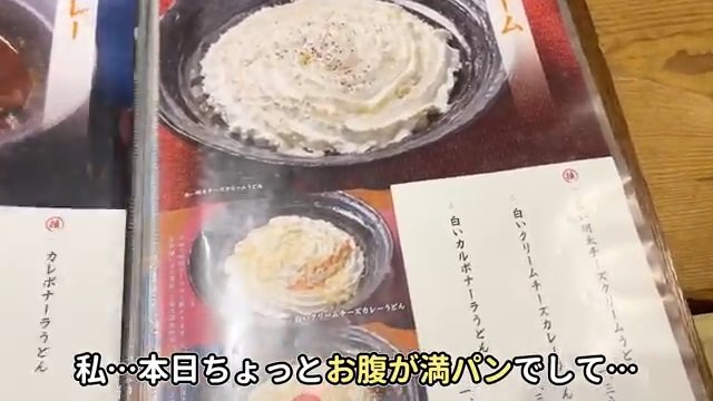松村さんは「山下本気うどん」に入店。メニューにずらりと並ぶ多種多様なうどんのメニューに目移りしながらも、一番目を惹かれたのは “クリーム系” だった様子。松村さんは「私…本日ちょっとお腹が満パンでして…」と、 “ではなぜこんな企画を?” と視聴者に疑問を抱かせる一言を発しながらも、「おうどんはいったん一個にして…」と、 “まさかもう一杯いくのでは?” と心配させるような前振りをしつつ、「カマンベールチーズ天」を合わせて「白い明太チーズクリームうどん」に決めました。
