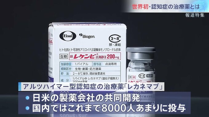 2023年、世界で初めて承認されたアルツハイマー型認知症の治療薬「レカネマブ」。日本とアメリカの製薬会社の共同開発で「レケンビ」という商品名で販売されている。日本ではこれまで8000人あまりの患者に投与されてきた。