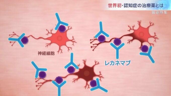 アルツハイマー病は、脳の中にアミロイドベータとよばれるタンパク質が蓄積することで神経細胞が破壊され、脳機能が低下する病気だ。「レカネマブ」はこのアミロイドベータを除去する。
