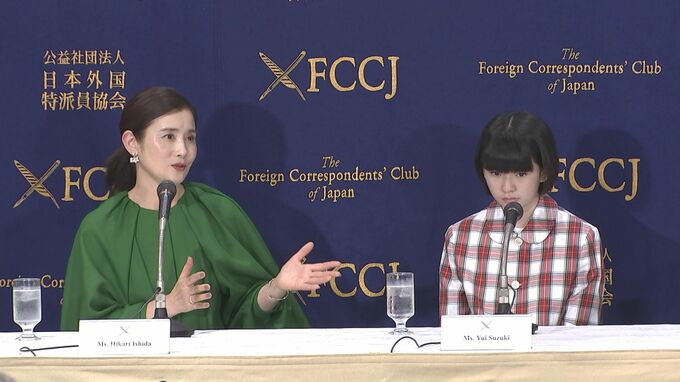 俳優の鈴木唯さん、石田ひかりさん、リリー・フランキーさんが、監督の早川千絵さんと共に、映画「ルノワール」外国特派員協会(FCCJ)記者会見に登壇しました。