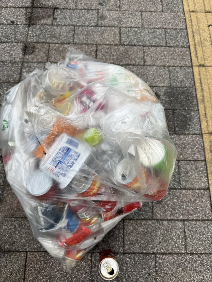 続けて、「このくらい缶が入っているとシールを貼って置いていくことになります。せっかく出してくれたのに回収できないので、一緒の袋に入れないで、缶は缶の日に出してくれると嬉しいです!」と呼びかけました。