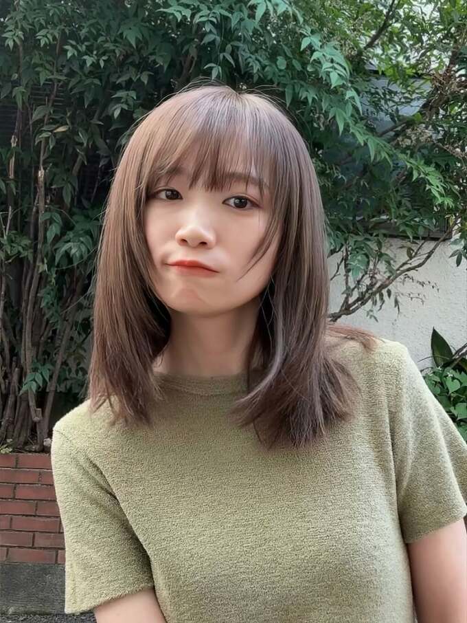 投稿された写真は、自然光の中で緑の半袖シャツを着用した姿で、髪は肩にかかるストレートヘアに顔周りのレイヤーが加わったことで、より柔らかな印象になっています。