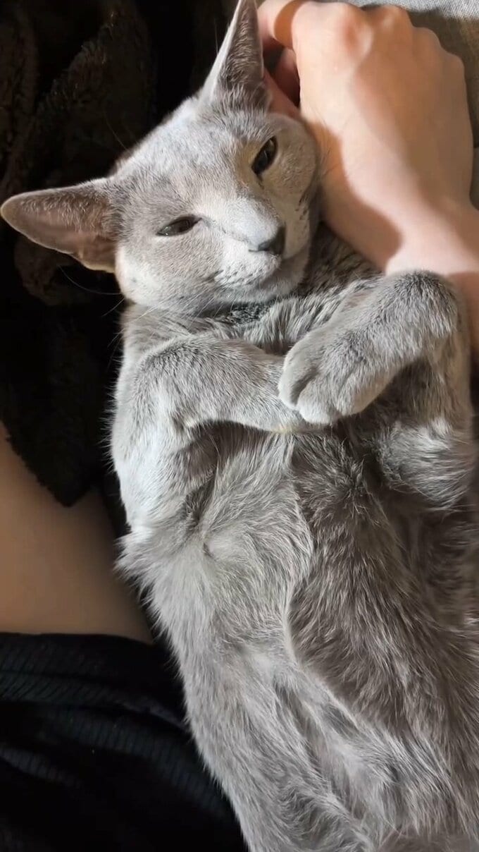 光宗さんは、ロシアンブルーと思われる自身の愛猫の、写真や動画を複数投稿。光宗さんのそばで、あまり身体を大きく広げないようにしながら、身体を細めて身を寄せてくる、愛らしい愛猫の姿が投稿されています。