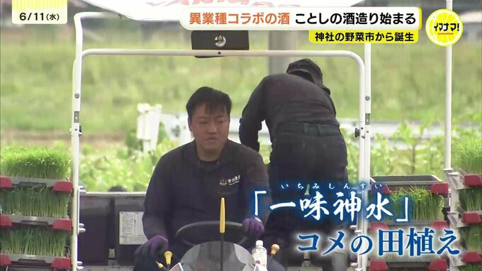 この春、広島市の神社の野菜市から新しい酒が誕生しました。名前は「一味神水(いちみしんすい)」。"挑戦”をコンセプトに、神主、杜氏、農家の異業種若手3人が造ったところ、味のよさからすぐに売り切れたそうです。その今年の酒づくりが始まりました。