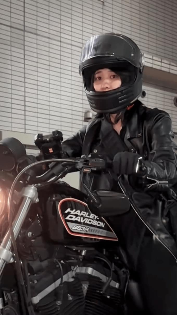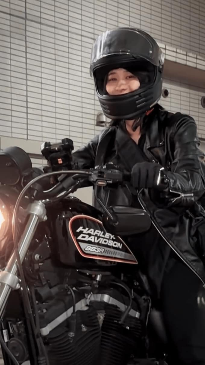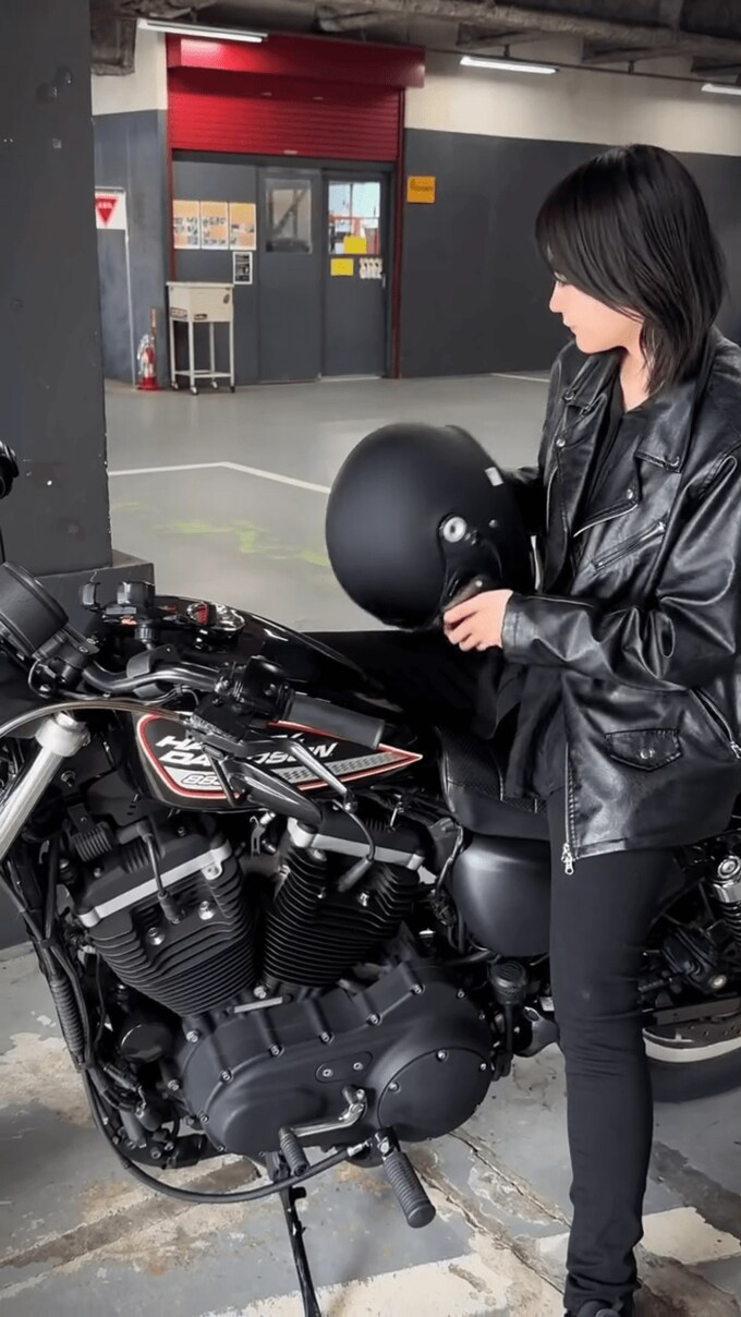 投稿された画像では、彩雪さんが愛車「ハーレーダビッドソン」の側に佇む姿や、シートにまたがる様子、ヘルメットをかぶり笑顔でハンドルを握る姿などが見て取れます。