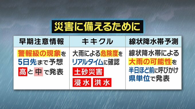 災害に備えるために気象庁が出している予測や情報を有効に活用してください。