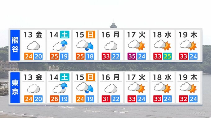 そして、来週は一段と暑くなる見込みです。17日(火)は東京で33℃、熊谷では35℃の猛暑日が予想されています。急な暑さに十分ご注意ください。