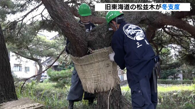 11月7日は暦の上で冬が始まる「立冬」です。静岡県三島市では毎年恒例のコモ巻きが行なわれ、旧東海道の松並木が冬支度を整えました。旧東海道の箱根松並木のコモ巻きは、毎年、立冬の日に見られる風物詩で2022年で…