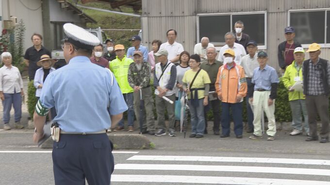 今年4月、乗用車にはねられ高齢男性が死亡した山口県山口市の事故現場で12日、地元の住民を対象にした交通安全講習会がありました。