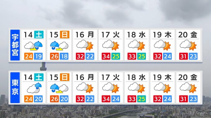 15日(日)は朝から雨 来週は“猛暑日”続出の予想