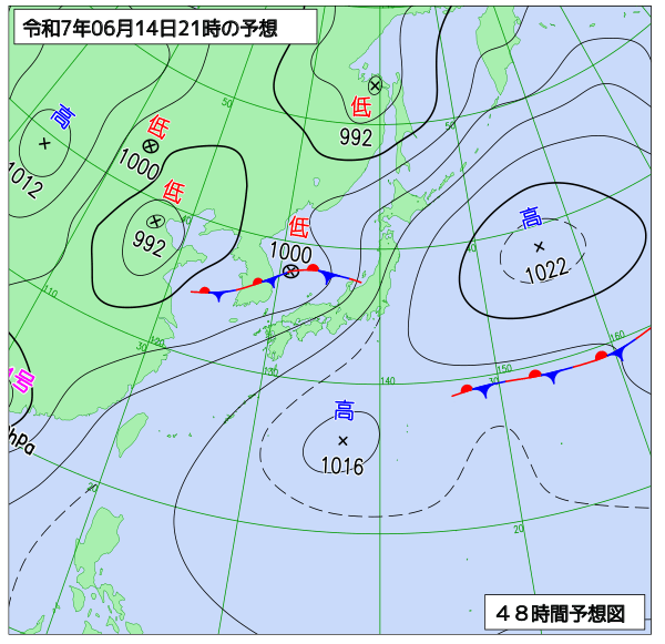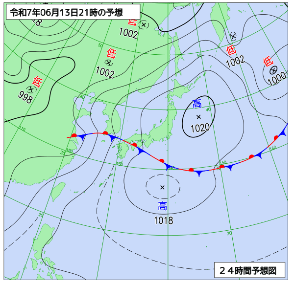 【台風情報】「台風1号(ウーティップ)」暴風域伴い時速15キロで北上中 最大瞬間風速45m/s いつ熱帯低気圧に変わる?【最新進路予想図・5日先までの雨と風の予想シミュレーションあり】(13日午後2時15分現在) 青森テレビ 2025年6月13日(金) 14:15 国内 24時間・48時間予想天気図 気象庁HPより 気象庁HPより