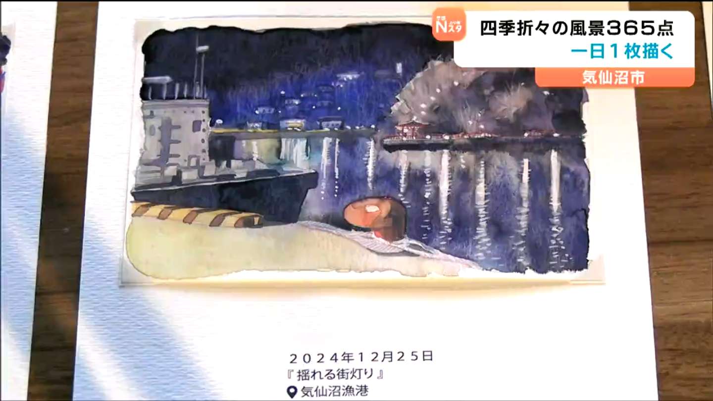宮城県気仙沼市の四季折々の風景を1日1枚ずつ描いたイラストの展示会が始まりました。
