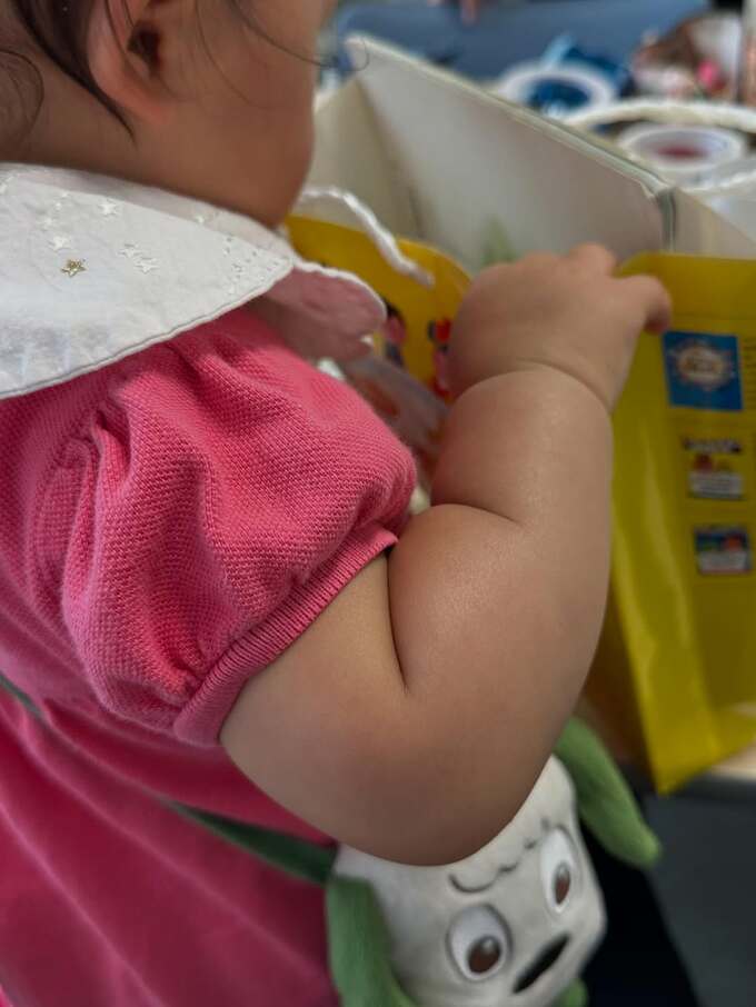 そんな時に立ち寄った施設で “ブックシェアリング” のイベントが開催されていたとのこと。そこでは「読み聞かせ」や「使わなくなったブックカバーで鞄やパズルを作る催し」などが行われていて「娘はたくさんのブックカバーの中から綺麗な黄色を手に取って鞄作り体験」と、夢中になれるモノを見つけたようです。