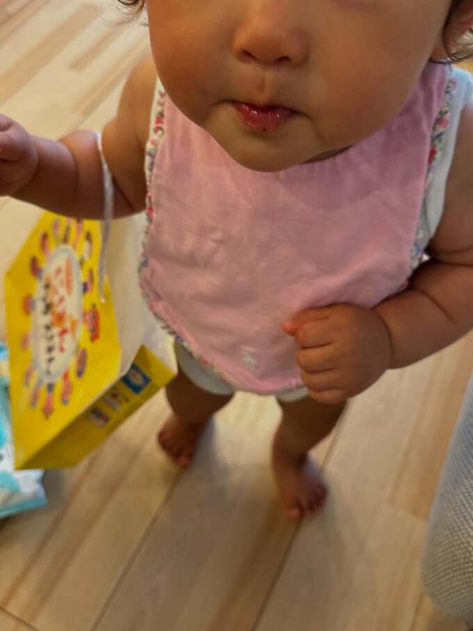 岡副さんは「なんでも肩に掛けたり背負ったりしたいお年頃なので完成するや否や早々に肩に掛けてご機嫌さん」と振り返り、「地域の方にたっくさん可愛がっていただいてます」「とっっってもありがたいです」と感謝の様子。