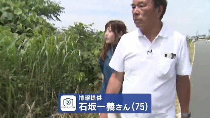 それは6月5日の昼過ぎのこと。石坂さんが秋津川(あきつがわ)沿いを車で走っていると、四つ足で歩く生き物が草むらから出てきました。