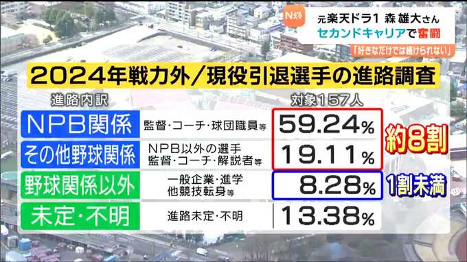 NPBが公表している現役を引退した人などの進路によると、約8割が野球関係の仕事に就いていて、一般企業などへの就職は1割足らずとなっています。
