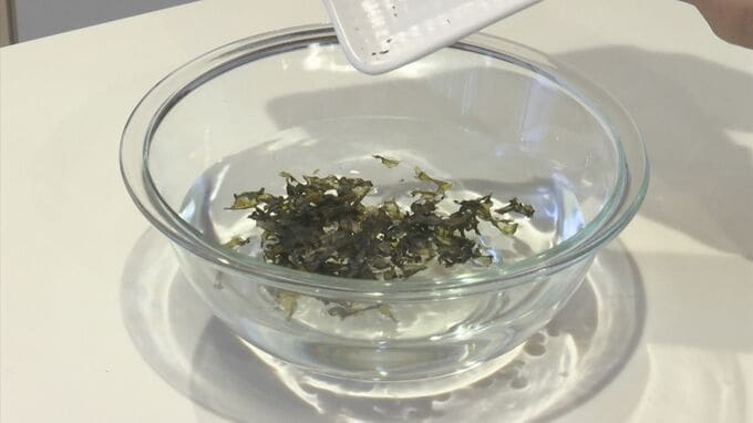 試しに乾燥状態のイシクラゲ2グラムを水に浸し1時間半待つと…、なんと22倍の44グラムに増えました。