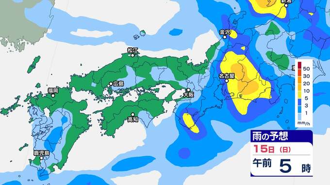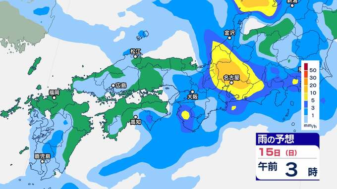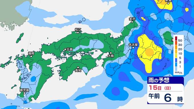 【大雨情報】東海地方は警報級の大雨となる可能性 14日夜遅くから雷を伴って“バケツをひっくり返したような”激しい雨が降り大雨となる所も…【雨と風のシミュレーション】土砂災害、低い土地の浸水、河川の増水に注意・警戒 チューリップテレビ 2025年6月13日(金) 17:09 国内 天気 15日(日)午前0時~午前6時まで雨のシミュレーション