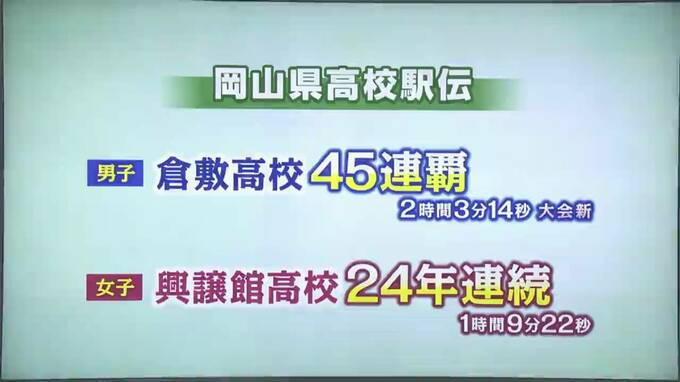 きのう(6日)行われた岡山県高校駅伝では、男子は倉敷高校が45連覇、女子は興譲館高校が24年連続で優勝を果たしました。両校は、来月(12月)25日に行われる全国高校駅伝に出場します。