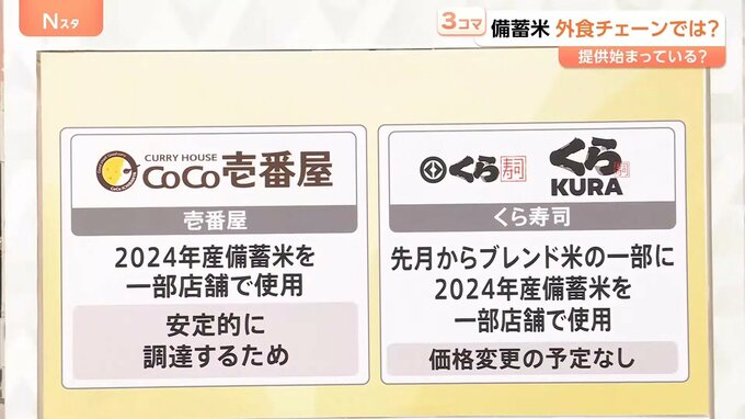 「CoCo壱番屋」は、2024年産の備蓄米を一部店舗で使用しているということでした。安定的に調達するためというのが理由です。