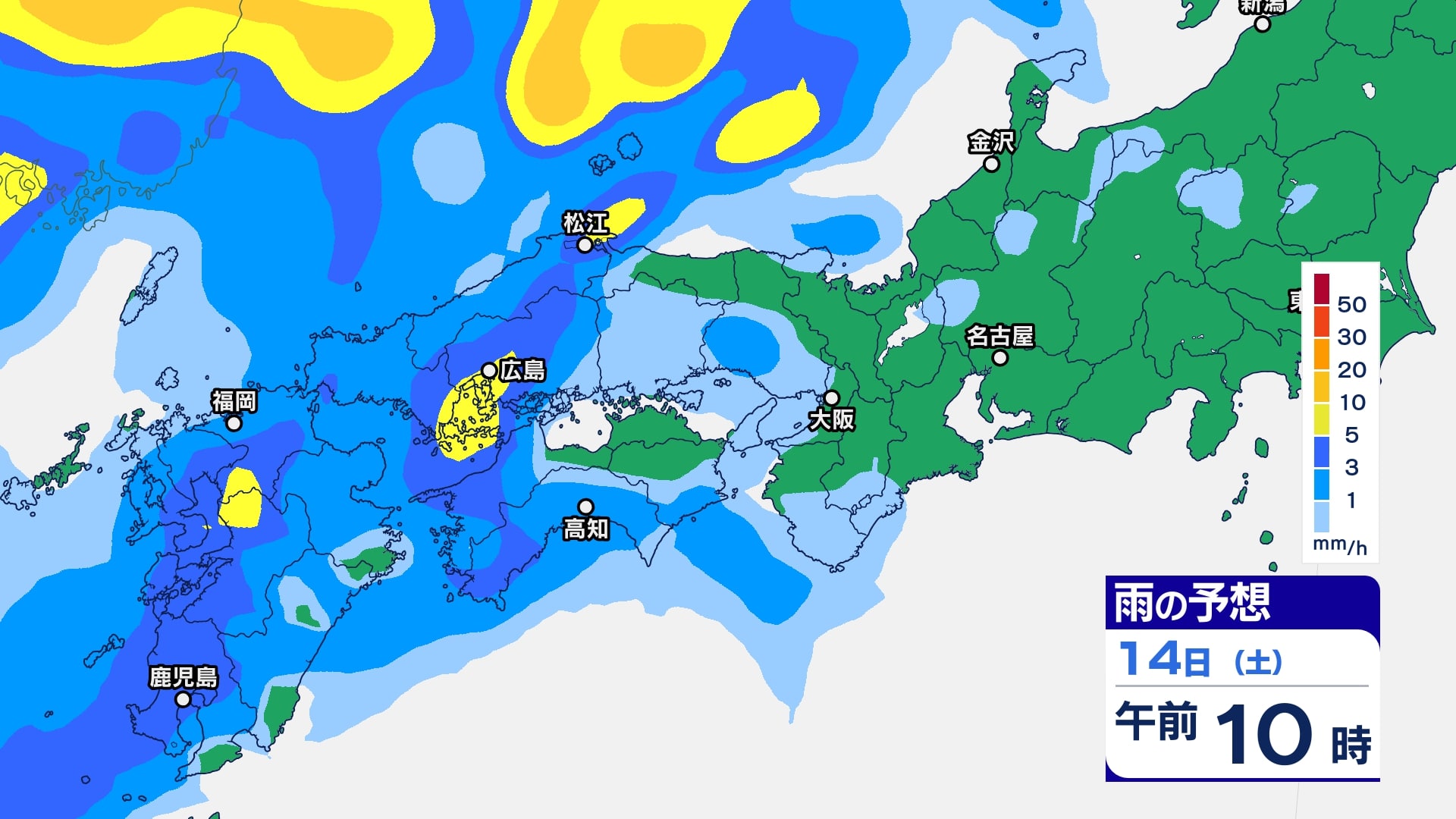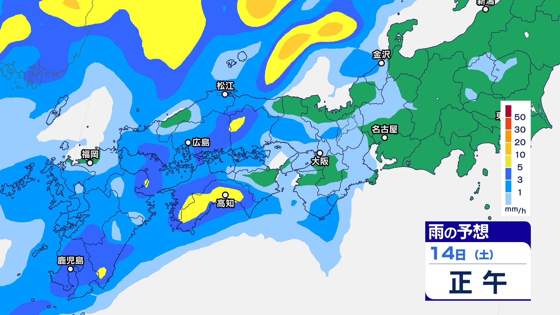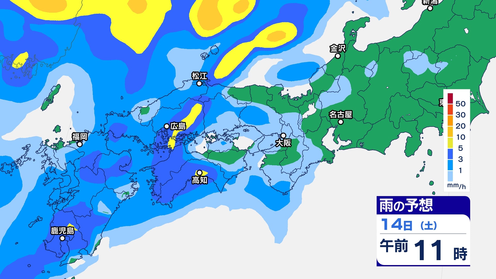 【短期予想 詳報】梅雨前線停滞で西日本は大雨警戒 九州・四国 200mmを予想【1時間ごと 雨のシミュレーション 】台風1号は15日にも熱帯低気圧へ 土砂災害・浸水に厳重注意 強風・高波 チューリップテレビ 2025年6月14日(土) 05:50 国内 天気 14日(土)正午までの雨の動き