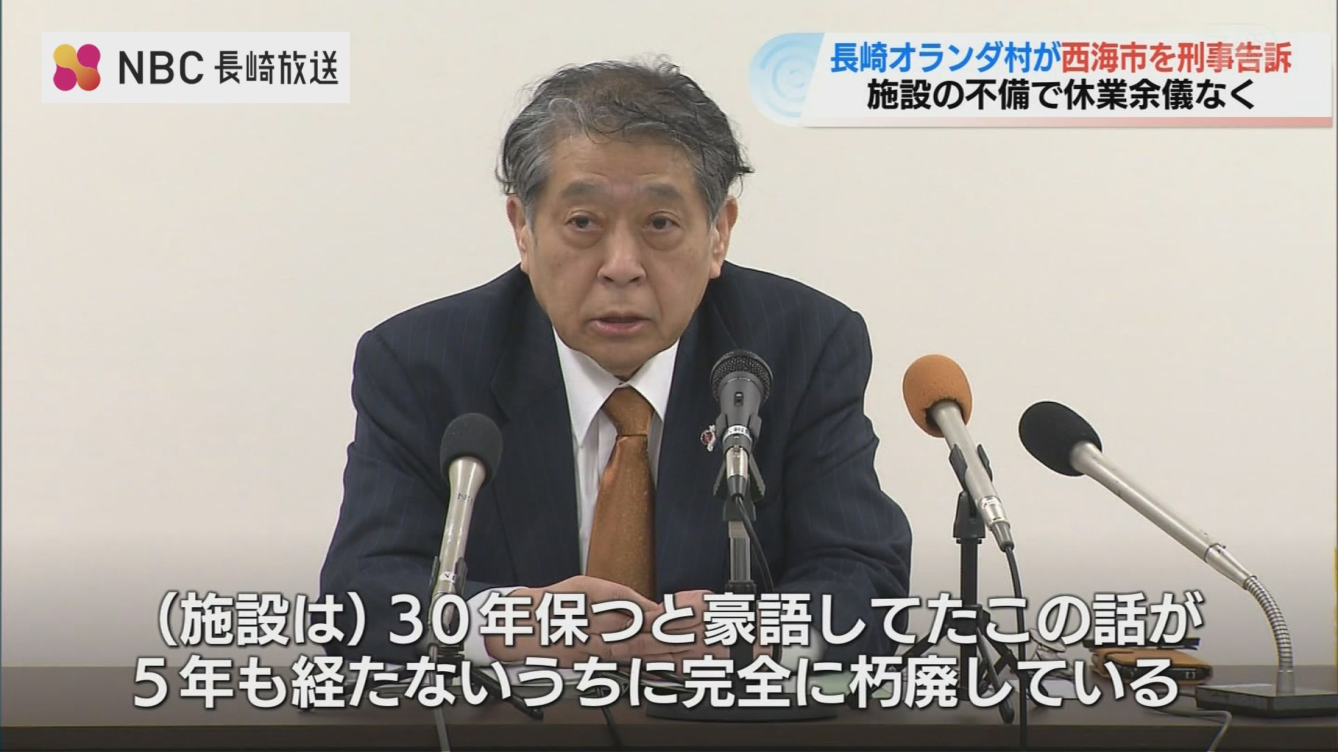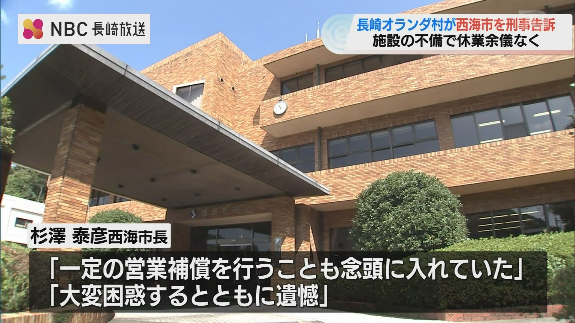 西海市のオランダ村跡地を運営する企業が「施設の不備で休業を余儀なくされたにも関わらず 市からの補償がないのは違法だ」などとして、西海市長らを7日、刑事告訴しました。