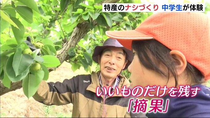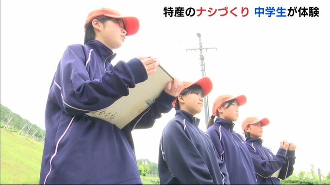 広島県三次市の中学生が、地元特産の「ナシづくり」を体験しました。
