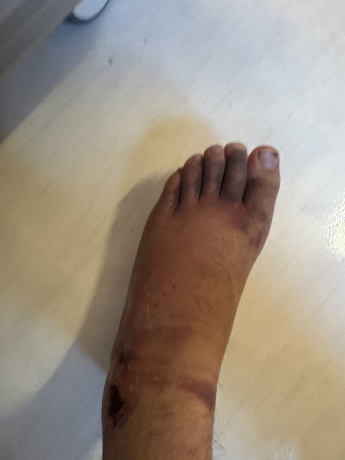 そして「こんな足になってしまいましたが、幸いにも骨は折れませんでした。」と綴ると、腫れ上がった足の写真や、ブーツの画像をアップ。