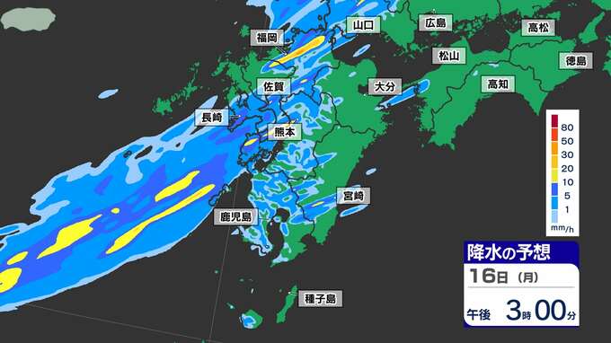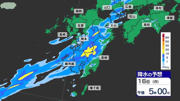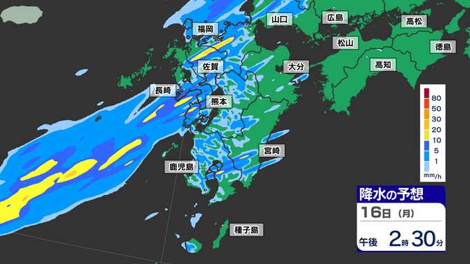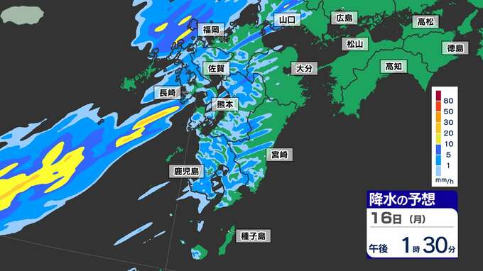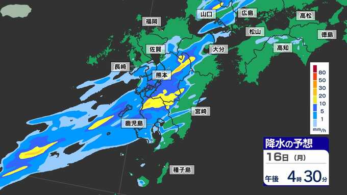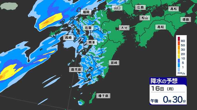 【天気の急変注意】激しい雨 落雷 突風 に注意【雨と発雷確率のシミュレーション16日(月)】福岡・佐賀・長崎・大分・熊本・宮崎・鹿児島 南日本放送 2025年6月16日(月) 12:00 国内 天気 【30分ごと】雨のシミュレーション16日(月) 局地的に積乱雲が発達する可能性があるため、シミュレーション以上の大雨となるおそれがあります。雨のシミュレーションは、画像で確認できます。