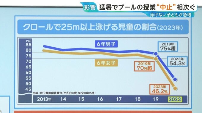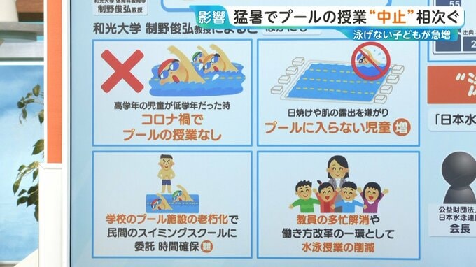 こうした中、制野教授はプール授業中止の影響などで『泳げない子どもが増えている』と指摘しています。