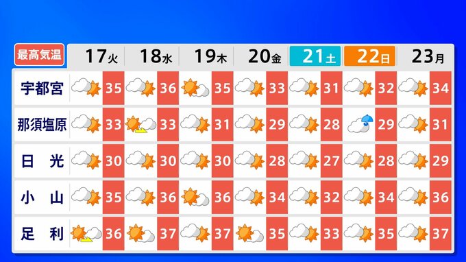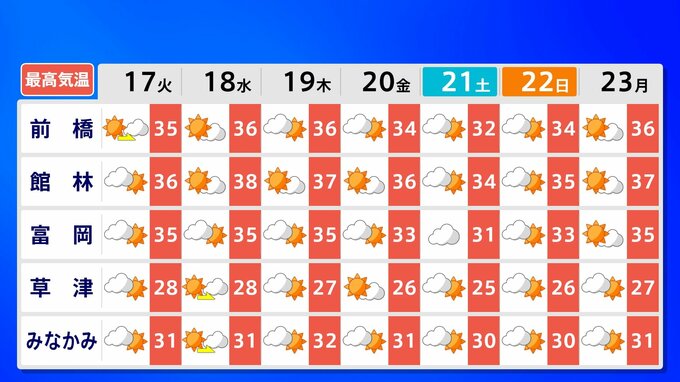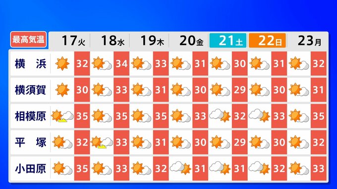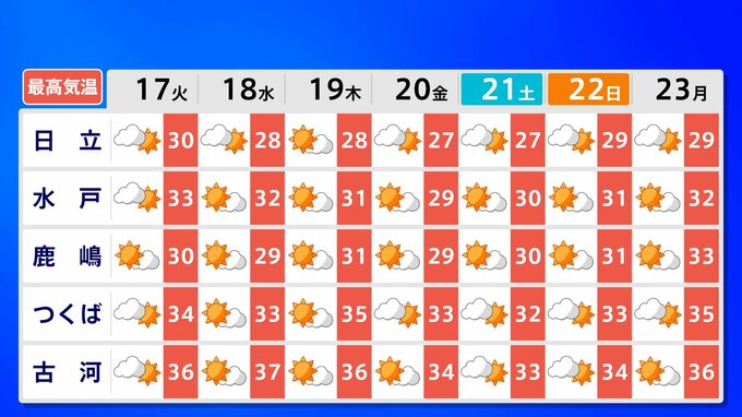 【東京 首都圏】まだ6月なのに あすから猛暑日続出 【気温のシミュレーション17日(火)/天気と 最高気温の週間予報】東京・神奈川・埼玉・千葉・群馬・栃木・茨城 南日本放送 2025年6月16日(月) 19:00 国内 天気 関東地方各都市の週間予報 晴れてしかも気温が高い〈梅雨の中休み〉です。予想最高気温を見ると、8月の最も暑いころと見間違うぐらいです。〈週間予報〉は関東各県の都市ごとに、画像で掲載しています。