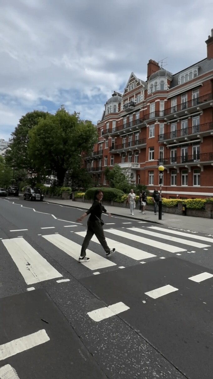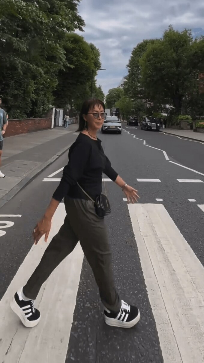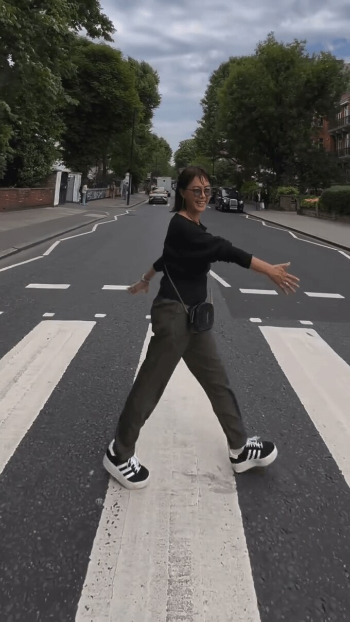 田中さんは「娘の家がアビー・ロードから歩いてすぐだから、ほぼ毎日アビーロード散歩、なんて最高なんでしょ」と満面の笑みで横断する様子をカット割りしながら撮影。