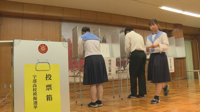 山口県宇部市の高校生が16日、選挙を模擬体験しました。