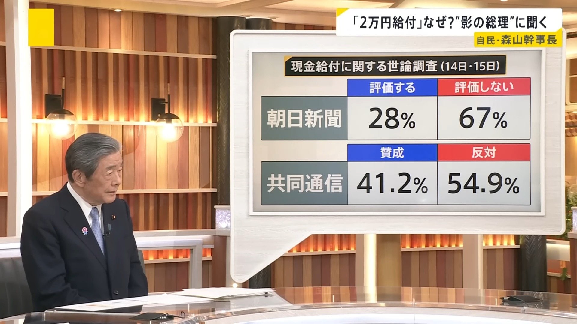 参謀役で“影の総理”とも言われている自民党のキーパーソン・森山幹事長に、早速、伺いたいのが、先週末、石破総理が表明した「国民に一律2万円の給付」について。