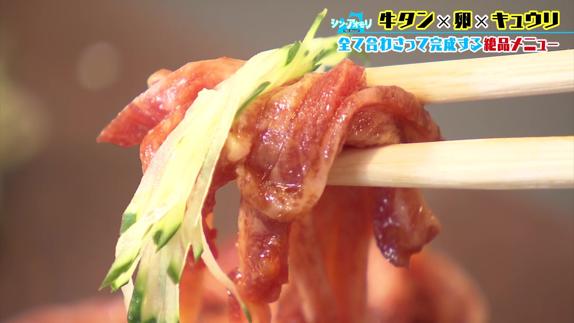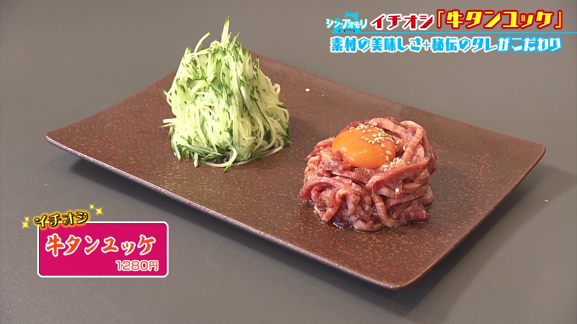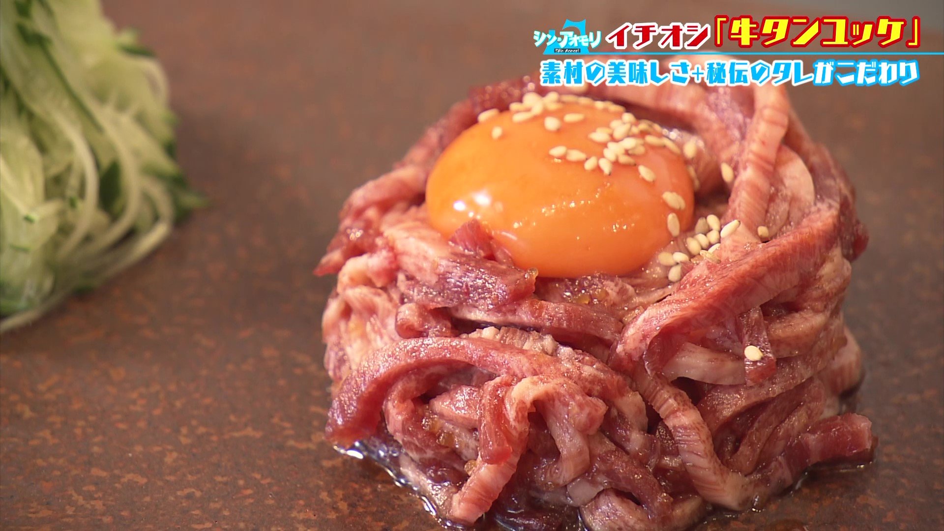 「おいし~!牛タンのかみ応えと、卵黄のクリーミーな感じと、キュウリのシャキシャキ感がすごくよく合う。全部の力があってこその牛タンユッケだと思う。目をつぶって食べると、お肉にもお魚にも属すし属さない新しい未来が見えますね。お肉なんですけど…ふふふ。牛タンってこういう楽しみ方があったんですね、うれしい発見です!」
